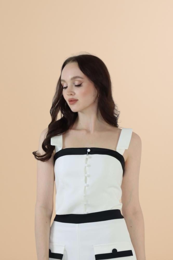 توب أبيض بتفاصيل سوداء