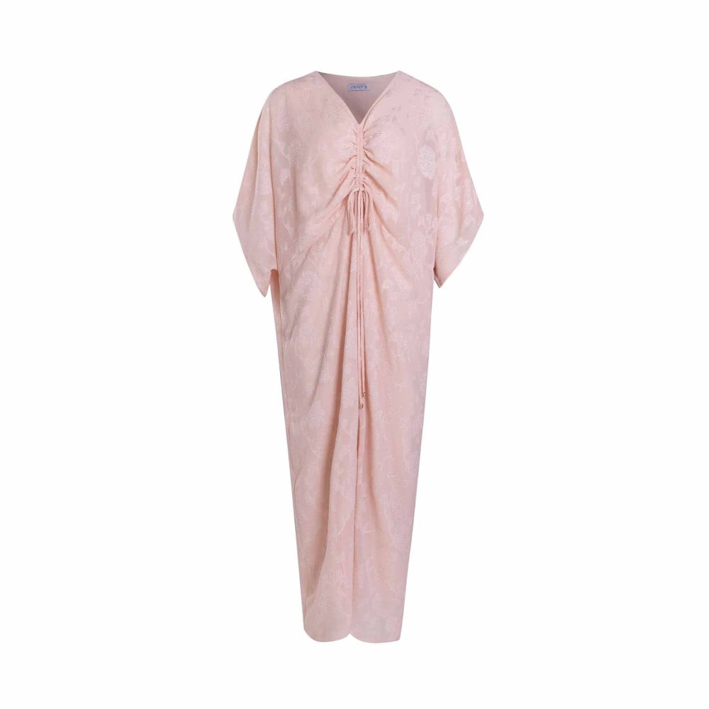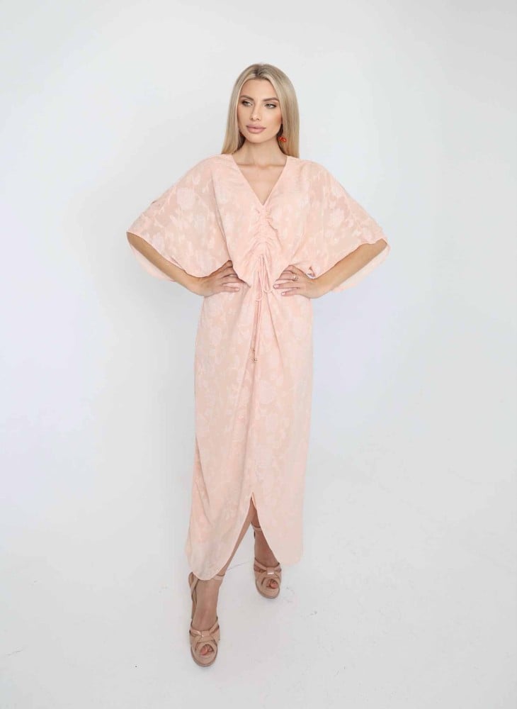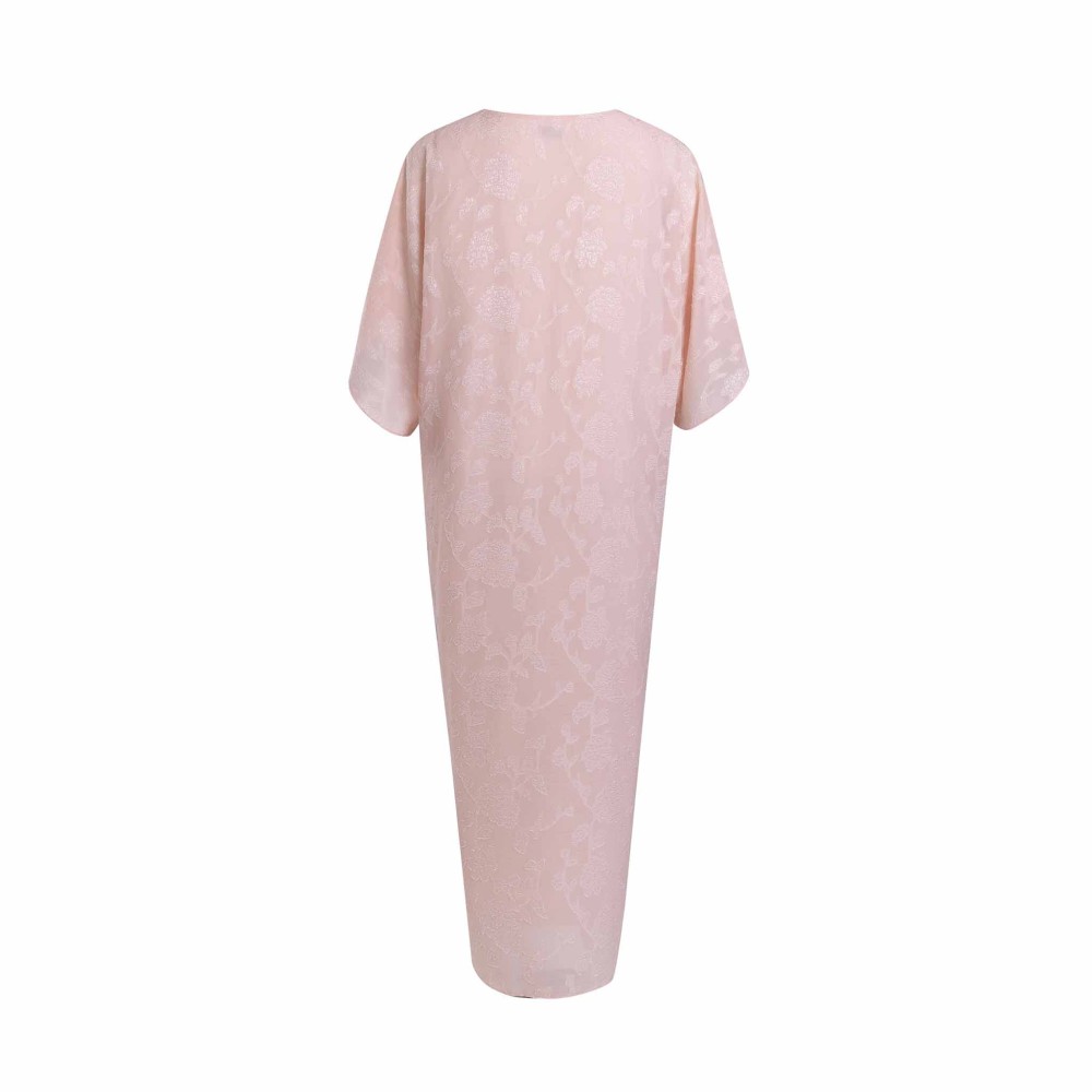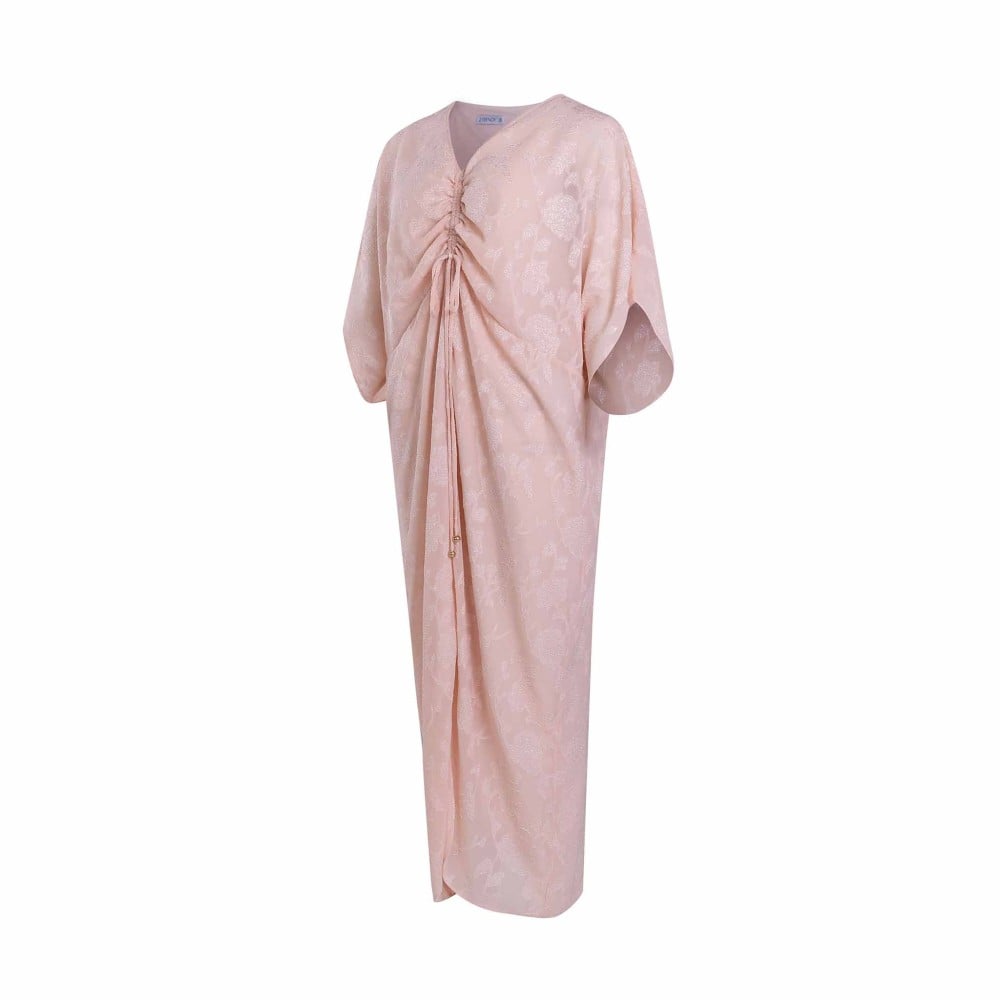 تتميز هذه الجلابية بلونها الخوخي و أكمامها الواسعة اللي راح تضفي عليها طابعاً فريداً وجذاباً.