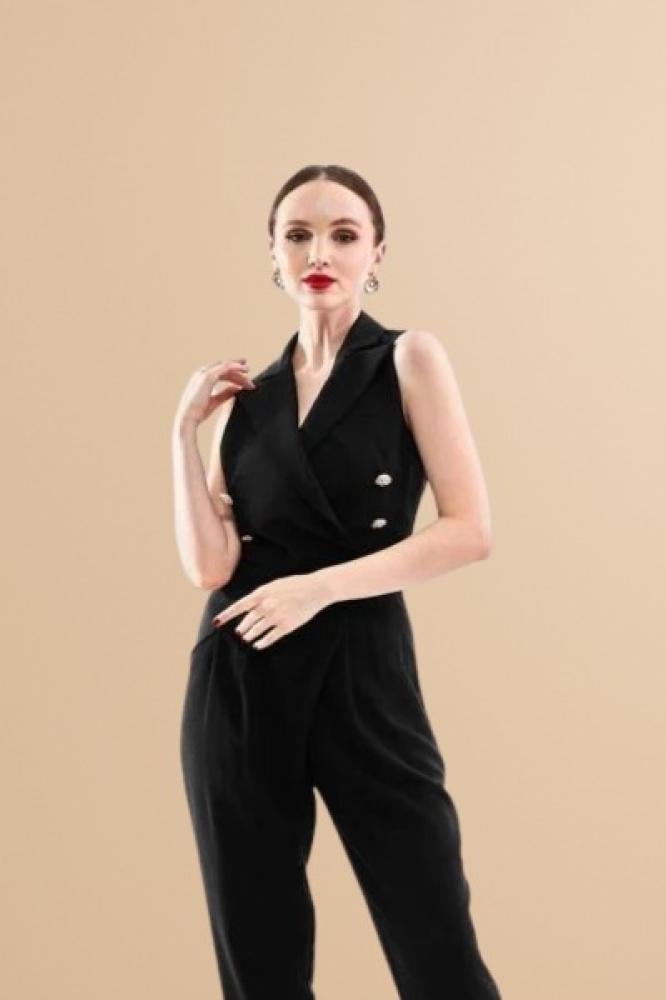 الجمبسوت الأسود، الذي يجمع بين الأناقة والراحة في تصميم واحد. يعتبر خيارًا مثاليًا للمناسبات المختلفة، سواء كانت رسمية أو غير رسمية.