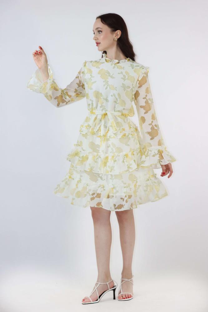 - تصميم رائع بألوان هادئة مع تفاصيل ورود صفراء تضفي لمسة من الجمال.
