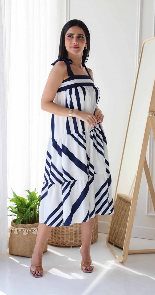 فستان بحمالات بخطوط متداخلة